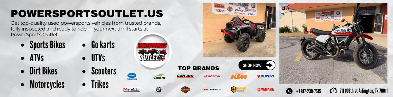 When riders in North Texas want reliable, inspected, and budget-friendly pre-owned powersports vehicles, PowerSports Outlet is the name that always comes up. From thrill-seekers chasing speed to weekend adventurers looking for something rugged—our dealership has become the trusted spot for anyone searching for high-quality used motorcycles, sports bikes, dirt bikes, ATVs, and more in the Arlington & Grand Prairie area.
